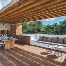 Adjacent to the splendid garden, a charming 80m2 guest house resides. It houses two double suites and boasts its living area, complete with a mini-fridge and coffee machine, catering perfectly to those in search of added privacy.