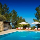 Spanning three levels, this property accommodates up to eight adults across four bedrooms. One of these bedrooms graces the villa's distinctive turret, accessible via a winding staircase originating from an opulent bathroom on the lower floor. Picturesque vistas of the striking Mallorcan terrain grace every room.