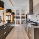 The kitchen leaves nothing to be desired in terms of equipment. Reflecting the villa's overall commitment to luxury, it boasts top-of-the-line amenities including a microwave, dishwasher, coffee machine, and two expansive refrigerators, alongside various other conveniences.