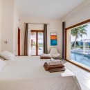 Bedroom 3: Ground floor bedroom with a double bed, A/C, WiFi, pool view, and en-suite bathroom with shower, vanity and WC. 2 guests maximum.