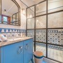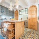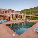 A natural stone and terra cotta structure, it features enormous amounts of natural light, and this is emphasized by the neutral and pale palette used in the décor throughout. The main entrance introduces you to some of the Moorish influences found throughout the property, including the beautiful tile work, arched doorways and natural light. There is a lounge, sunken living room with beautifully tiled fireplace, cheerful dining room (also with fireplace), and the modern kitchen with premium appliances and beautiful cabinetry and work surfaces.
