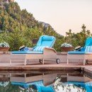 This premiere villa is part of a large and private estate that has thriving groves of citrus and olives, stunning stone terraces that gaze out to the sea and frame the beautifully manicured gardens and grounds, and a charming pool terrace with sun decks and several al fresco lounging and dining areas. There are several covered terraces also furnished as outdoor living spaces.