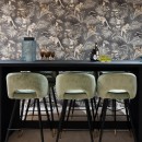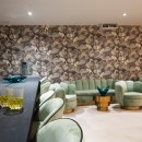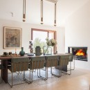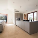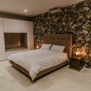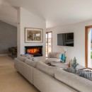 The villa combines a modern aesthetic with traditional Mallorcan countryside elements, creating an exclusive atmosphere enhanced by elegant décor and deluxe amenities. Outside, guests can enjoy a stunning garden featuring a heated infinity pool and sun-soaked terrace. The entry level showcases an open-concept design, featuring a bright dining and living area with a grand fireplace that flows into a high-end kitchen. On one side, three beautifully designed bedroom suites offer direct access to the outdoor terrace, while the impressive master suite on the opposite side includes a spa area, walk-in closet, and a private terrace.