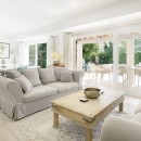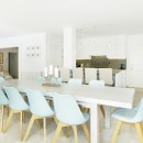 The well-appointed kitchen, featuring an expansive island/breakfast bar, is equipped with all the essentials—a sizable oven, gas stove, microwave, dishwasher, spacious refrigerator, Nespresso machine, and an assortment of kitchen gadgets for juicing and smoothie-making. An elegant solid wood dining table comfortably accommodates up to 10 individuals for meals throughout the day.