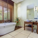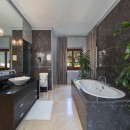 On the lower level, the villa includes a luxurious master bedroom with an en-suite bathroom, two generously sized guest bedrooms with en-suite bathrooms, a cozy TV room, and a utility room. The tasteful interior design ensures a harmonious and sophisticated living experience for the most discerning residents.