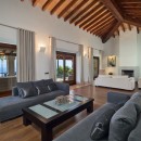 Set on a sprawling 1,800 m² south-facing plot, the villa offers an unrivaled panoramic view of the open sea. Its exceptional construction quality and meticulous execution enhance its value, while the Mediterranean-inspired design and architectural highlights, such as soaring ceilings up to six meters high with exposed wooden beams, create an inviting living ambiance.