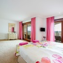 Bedroom 5: Second floor bedroom with a king-size bed, A/C, WiFi, and two shared bathrooms with shower, vanity and WC. 2 guests maximum