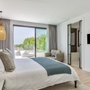 Bedroom 2: First floor Master bedroom with a king-size bed, A/C, TV, WiFi, walk-in closet, sea view, private terrace, and en-suite bathroom with bathtub, shower, double vanity and WC. 2 guests maximum.