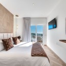 Bedroom 1: First floor Master bedroom with a king-size bed, A/C, TV, WiFi, sea view, private terrace, and en-suite bathroom with shower, vanity, and WC. 2 guests maximum.
