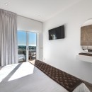 Bedroom 2: First floor bedroom with a king-size bed, A/C, TV, WiFi, sea view, private terrace, and en-suite bathroom with shower, vanity, and WC. 2 guests maximum.