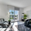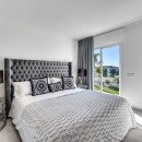 The main level of the villa boasts an open-concept design, with a bright and airy living room centered around a cozy fireplace, offering sweeping views of the sea and golf course. The adjacent dining area and state-of-the-art modern kitchen are ideal for entertaining or preparing gourmet meals. The living space seamlessly transitions to a covered terrace, perfect for al fresco dining or soaking up the Andalusian sun.