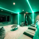 On the upper level, the master suite and a guest bedroom, each with en-suite bathrooms, open onto private terraces with breathtaking panoramic views. The garden level is equally captivating, featuring two additional en-suite bedrooms, a luxurious cinema, and a games room equipped with PlayStation 5, a gaming computer, a pinball machine, air hockey, and more. This level also includes a sauna, a dedicated massage area, and a comfortable lounge with direct access to the lush gardens. Outside, the heart-shaped pool, surrounded by sun loungers, invites relaxation, while a private gym caters to fitness enthusiasts.