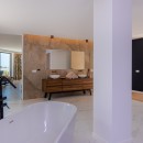 Bedroom 1: Master bedroom with a king-size bed, A/C, TV, WiFi, walk-in closet, sea view, private terrace, and en-suite bathroom with bathtub, indoor/outdoor shower, double vanity and WC. 2 guests maximum.