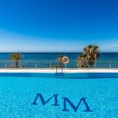 Complementing the apartment, a designated parking spot within the secure parking garage of the Marina Mariola apartment complex is included. The building offers direct beach access, featuring an entrance hall with a concierge desk and around-the-clock security. Residents can indulge in the expansive lounge area, facilitated by four panoramic lifts and complemented by a subtropical garden. Additional luxuries such as a sauna and indoor/outdoor swimming pools contribute to an opulent experience.