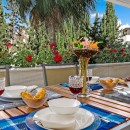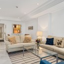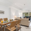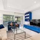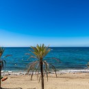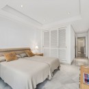Prime Location! This exquisite two-bedroom apartment Marina Mariola presents expansive vistas of the Mediterranean Sea, setting the stage for an unforgettable Marbella retreat. The interior design radiates timeless elegance, highlighted by intricately detailed tray ceilings that enhance the ambiance. An abundantly sized terrace spans the entire length of the apartment, adding a remarkable feature to the space. The apartment features a fully equipped kitchen seamlessly connected to a bright and welcoming living room. Each of the bedrooms, accompanied by its bathroom, comfortably accommodates up to four guests. Notably, the master bedroom boasts a private en-suite bathroom and exclusive access to the terrace, complete with a seating area that overlooks the ocean.