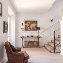 The residence boasts a design that effortlessly radiates sophistication and comfort. The interiors exhibit a profound appreciation for antiques and a harmonious balance, characterized by a traditional sense of opulence. The overall ambiance is deeply rooted in European aesthetics. The interiors feature elegant wooden furnishings, such as Queen Anne chairs and cabriole legs. The living room and study are centered around grand open fireplaces while inviting dark, warm tones are layered over a neutral palette.