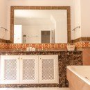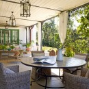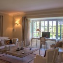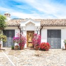 The timeless style draws inspiration from the 18th and 19th centuries, seamlessly blending classic art, historical antiques, and furniture throughout the house. The garden and house coalesce, with wisteria and jasmine occasionally intertwining with windows. This charming family residence, available for rent in Marbella, rests on a 5,100 square meter plot adorned with a matured garden. The villa boasts a western orientation that provides a delightful view of the golf course, hills, and beautiful sunsets. The outdoor heated swimming pool is surrounded by a lush garden with Mediterranean fruit trees, cork oaks, and olive trees at varying levels.