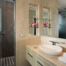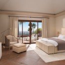 Bedroom 1: First floor Master bedroom with a king-size bed, TV, private terrace with sea view, his and hers walk-in closet and his and hers en-suite bathrooms, one with shower, vanity and WC, the other one with bathtub, shower, vanity and WC. 2 guests maximum.