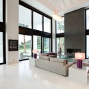 Located on large lot in La Zagaleta, one of Spain’s most exclusive private residences, this beautiful three-story villa looks like the mansion home of a Hollywood star with the tall white columns and stately palm trees lining the grounds. Sitting on the terrace, you can overlook the lush green grass while you ponder the mountains in the distance or the ocean visible just beyond the rise. The interior is cool and contemporary with a gray and plum color scheme that is soothing and beckons relaxation. The modern minimalistic decor pairs perfectly with the white tile floors and vaulted ceilings. You will constantly be reminded of the stunning view just outside due to the floor to ceiling windows in the main living area.