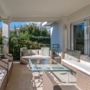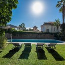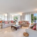 The villa's standout feature is its captivating terrace, designed for outdoor living at its finest. Equipped with a cozy seating area, a dining space, and a BBQ, it’s perfect for alfresco dining and entertaining. The terrace overlooks a lush, mature garden that frames a sparkling swimming pool, offering a private and tranquil space for relaxation and recreation. The property also includes secure parking for two vehicles.
