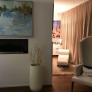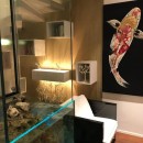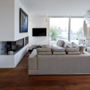 On the lower level, the penthouse includes two bedrooms, a bathroom, and a luxurious master suite with its own fireplace, walk-in closet, and a beautifully designed concrete bathtub. The layout also offers a laundry room and an impressive two-story fish tank, adding a unique touch to the living space. Just minutes away from the city center and renowned shopping on Bahnhofstrasse, you’re also a short walk from delightful lakeside restaurants, making it easy to enjoy dining or a swim at your convenience.