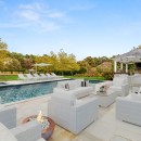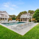 Outside, enjoy a true oasis at this Martha’s Vineyard luxury rental. The Gunite saltwater pool, complemented by a hot tub, is set within meticulously landscaped grounds dotted with vibrant hydrangeas. Relax by the fire pit on the stone patio, or challenge friends to a friendly game of ping pong or bocce. The brand-new, two-story pool house features a game room with a pool table, air hockey, and comfortable seating, plus a half bath for added convenience. On the other side of the pool, the outdoor entertainment area boasts a large grill, sink, refrigerator, wine fridge, pizza oven, and a SunBrite outdoor TV—ideal for alfresco gatherings.